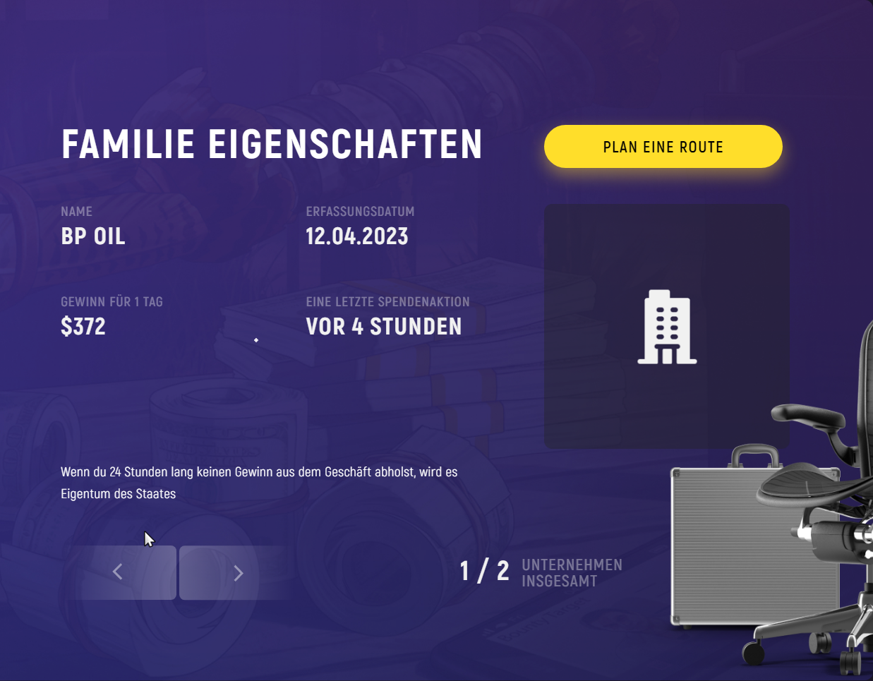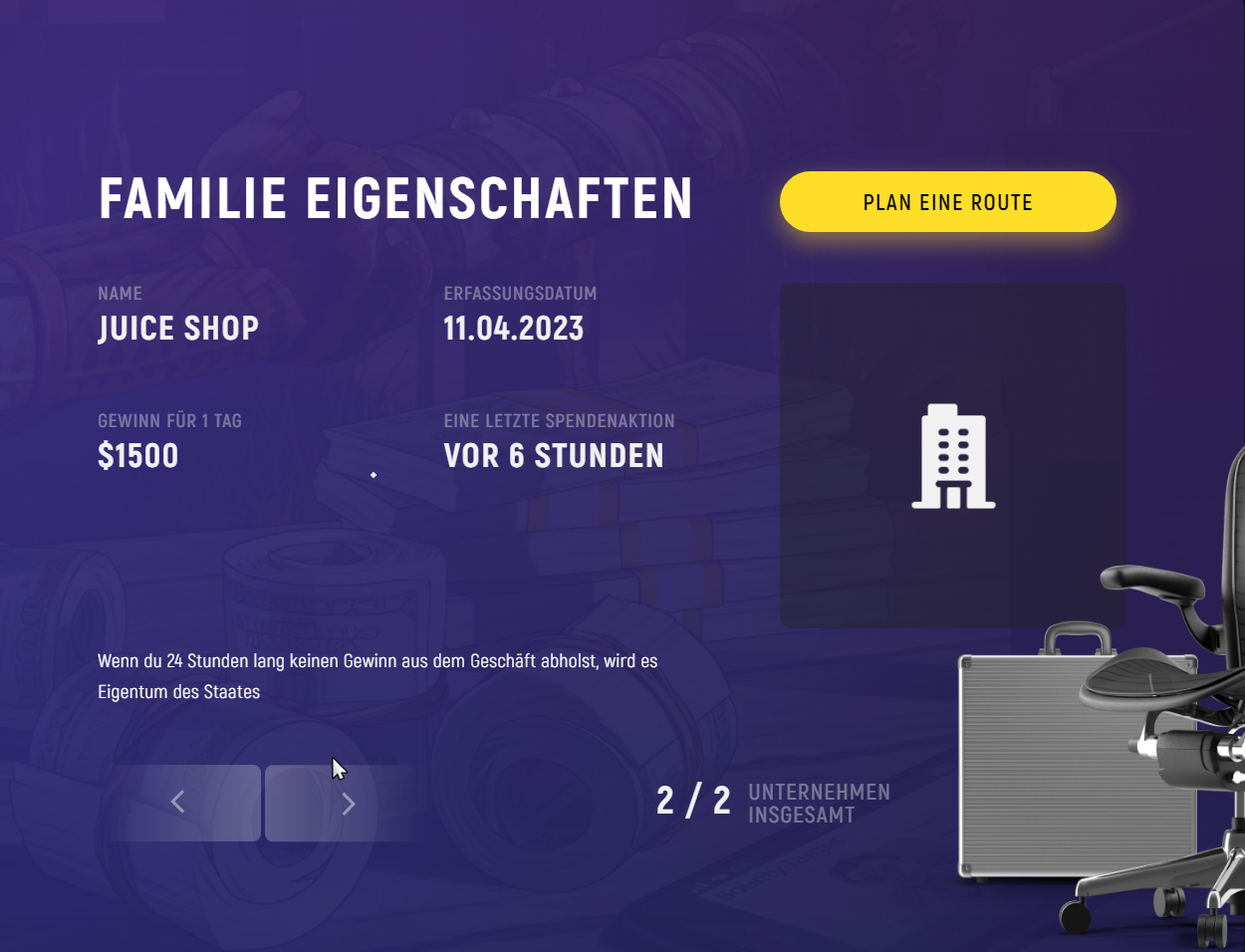 Wir Verdienen unser Geld mit dem Schutzgeld anderer Unternehmen, und dem verkauf von Waffen unteranderem auch mit Razzien.